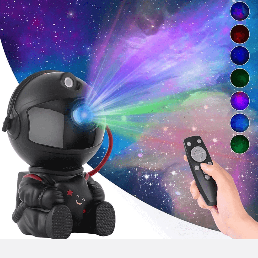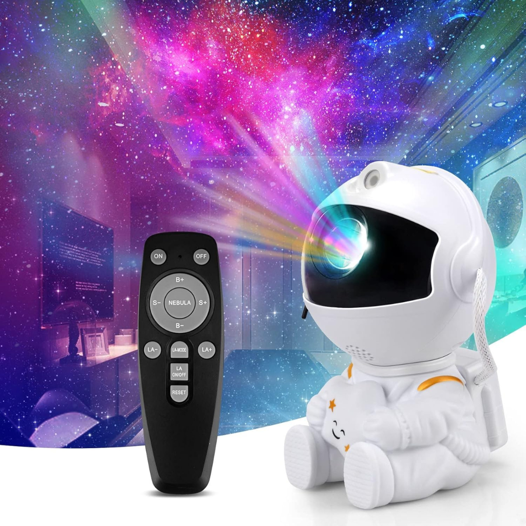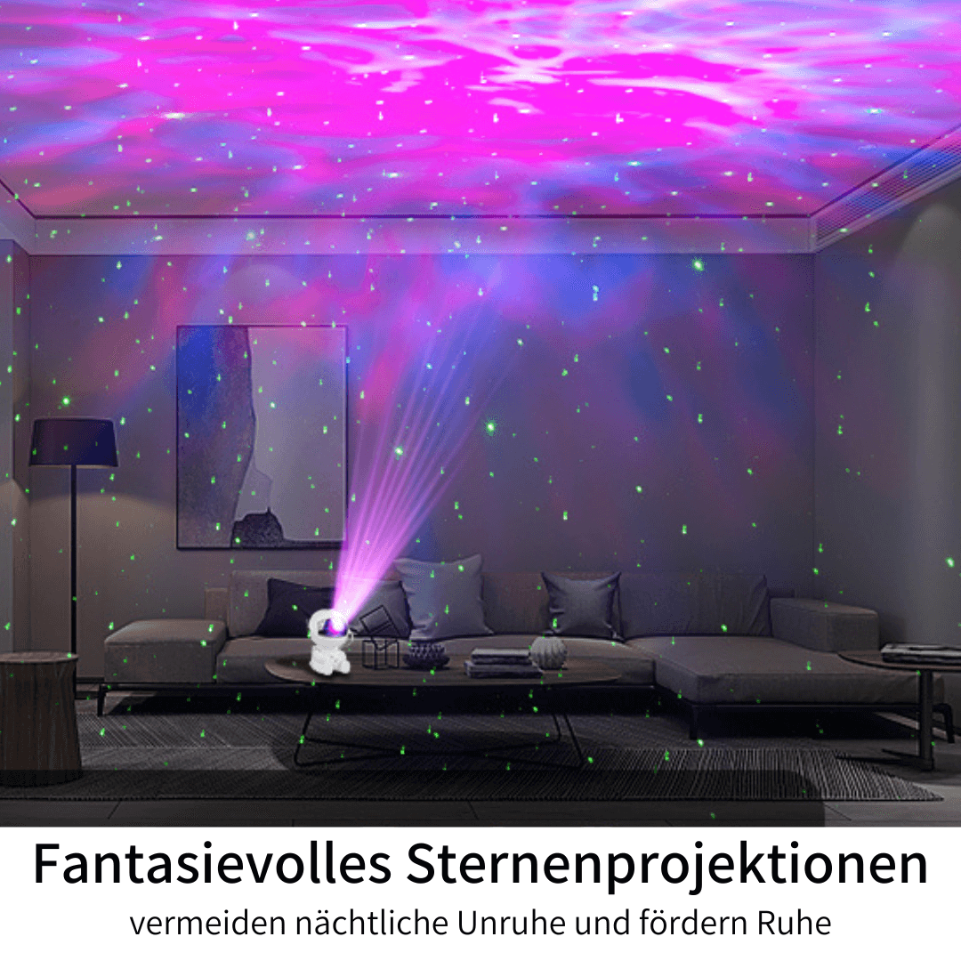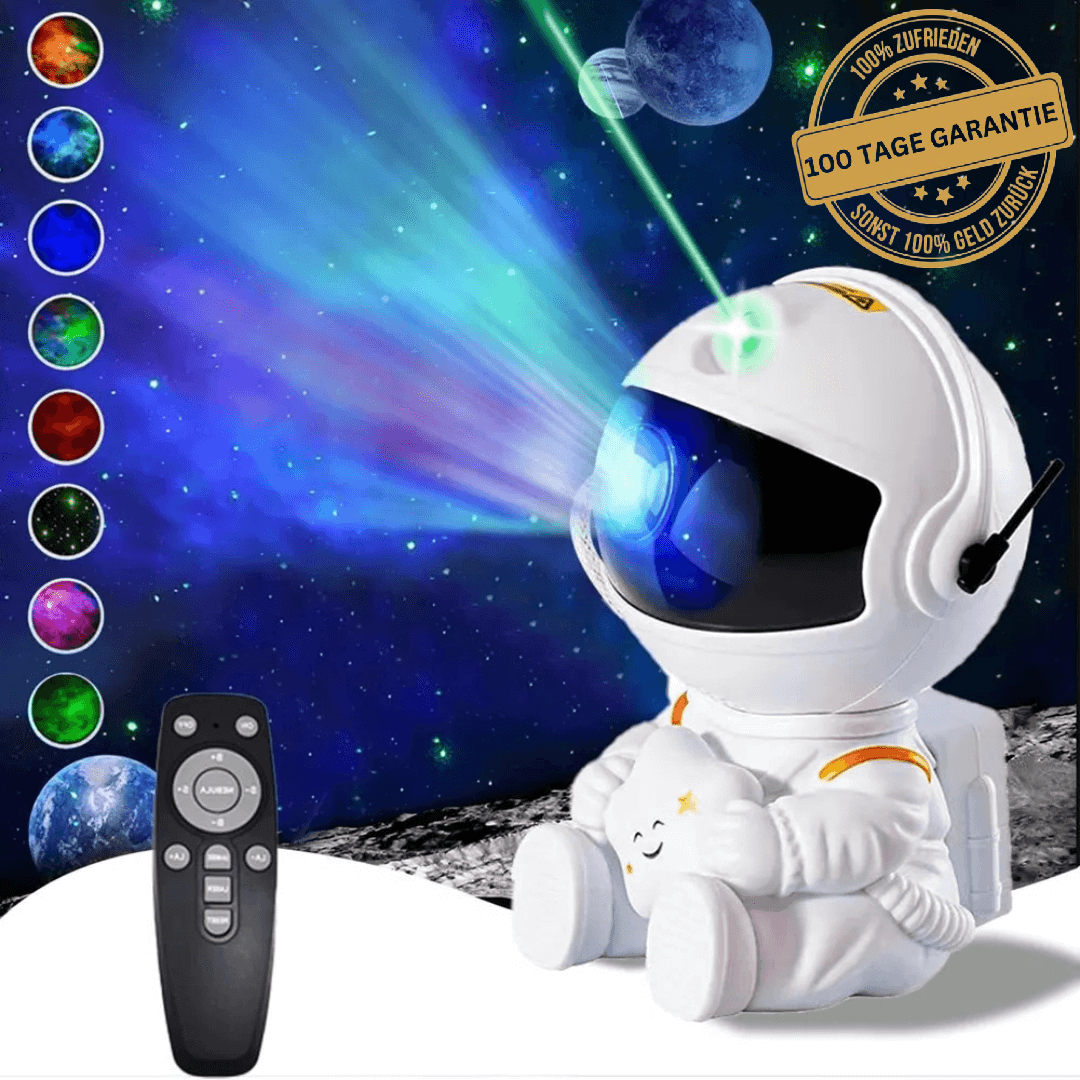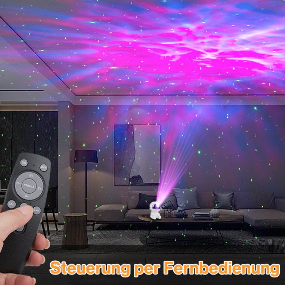 Der Astronaut Projektor zaubert einen funkelnden Sternen- und Nebelhimmels-Effekt an die Decke oder Wand – perfekt für entspannte Abende, Kinderzimmer oder romantische Atmosphäre.