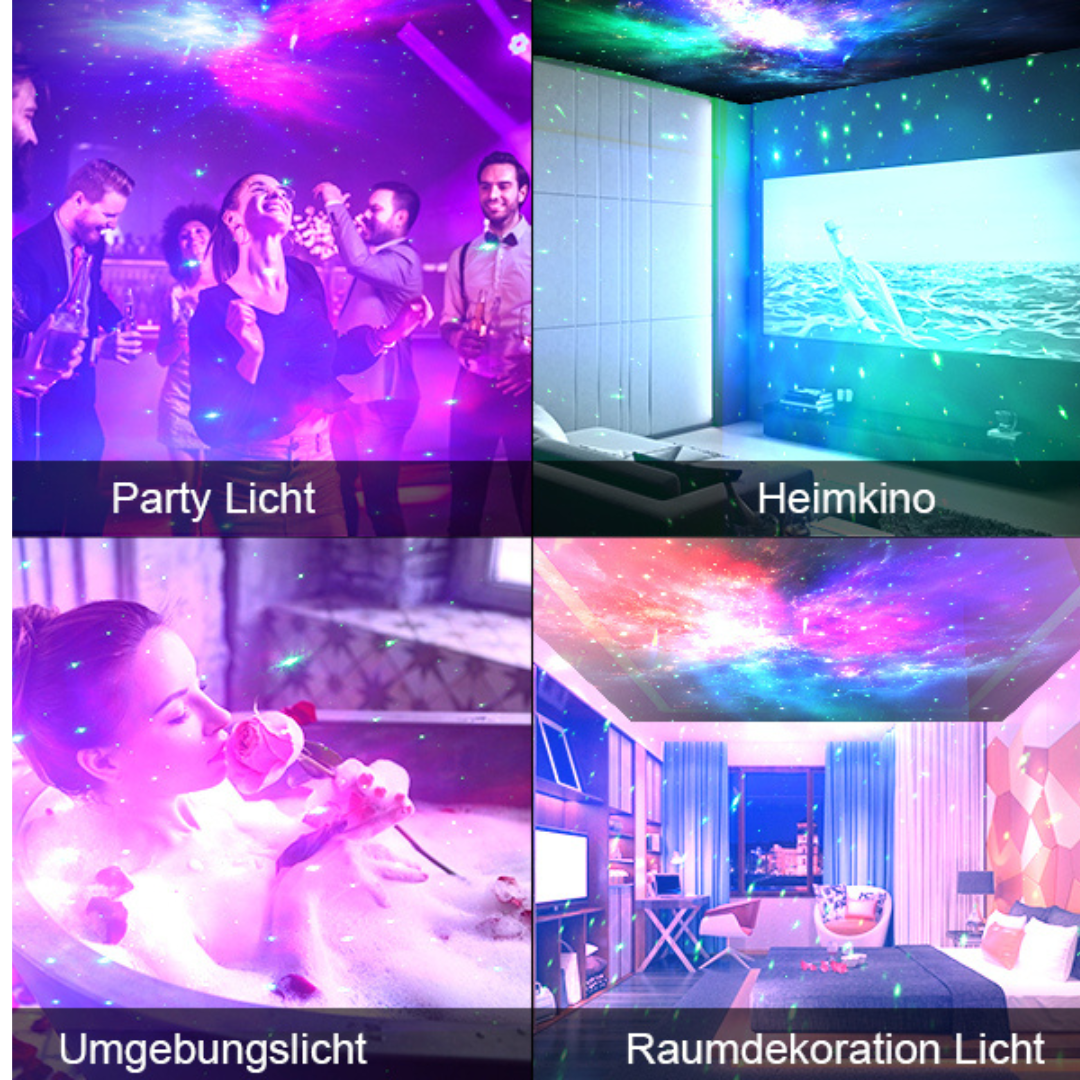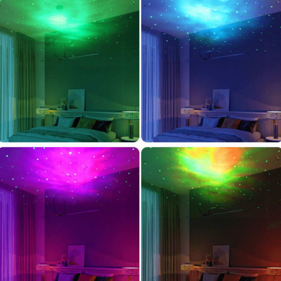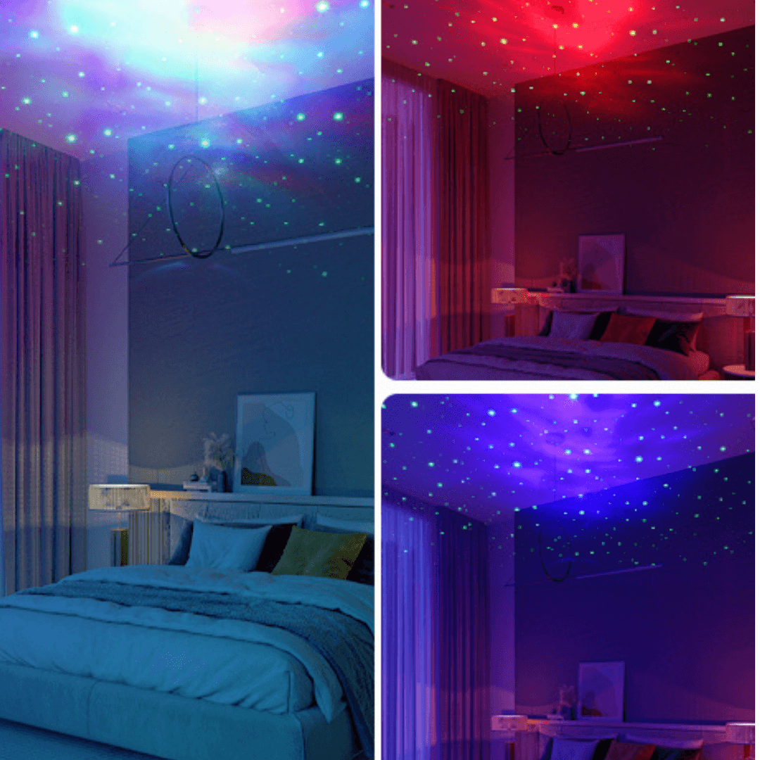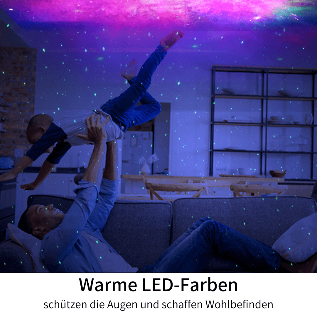 - Sternen- und Nebelprojektionen: Tauche ein in das Universum und erlebe leuchtende Sterne und sanfte Nebel, die eine beruhigende und faszinierende Atmosphäre schaffen.